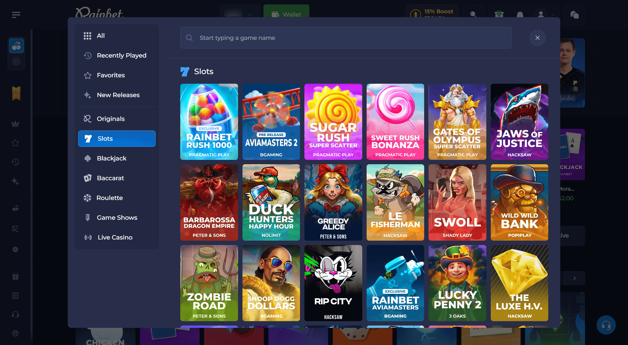 The casino lobby at Rainbet feels like walking into a massive, well‑organized warehouse of entertainment. Tiles for slots are neatly arranged, with categories for new games, popular picks, high volatility, jackpots, and more, plus filters and a search bar that actually help you find what you’re in the mood for. Providers are listed clearly, so if you’re a fan of a specific studio, you can zero in quickly.