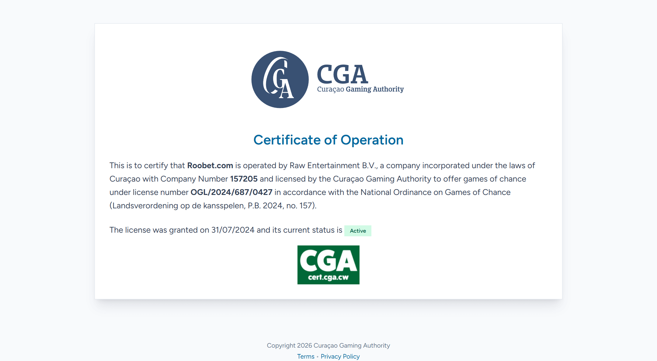 Roobet operates under a Curaçao eGaming framework, with a license number publicly cited as issued under the Government of Curaçao and Antillephone as the supervising entity. For the crypto casino vertical, that’s the standard offshore setup: not as strict as MGA or UKGC, but it does mean there’s at least a formal regulator overseeing fairness, payouts, and operational standards.