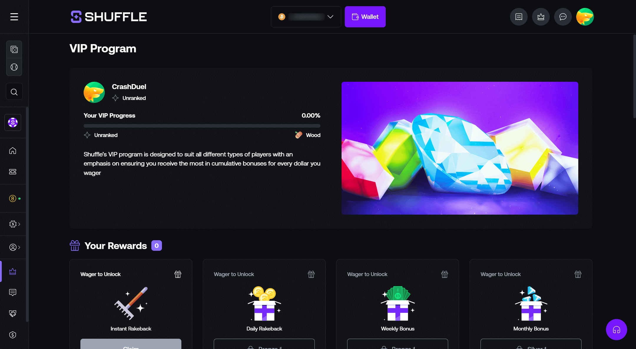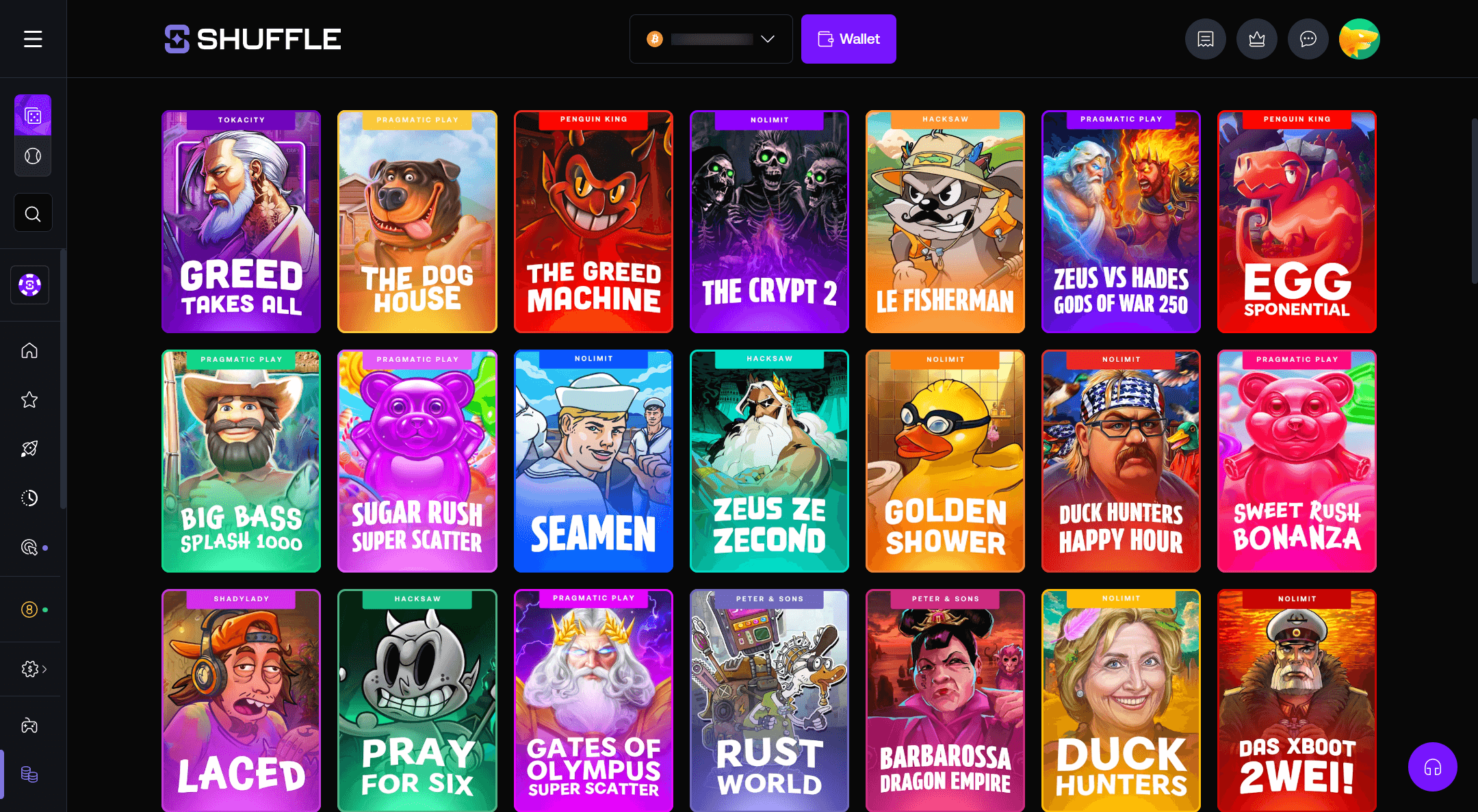 - Exclusive Shuffle Originals with provably fair mechanics.