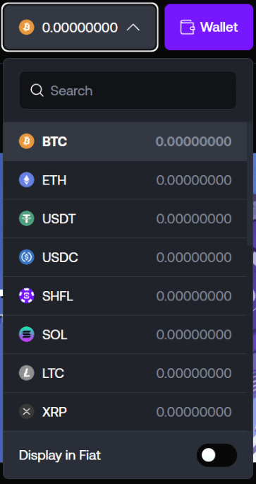 Before I park significant funds on any site, I want to know exactly how money moves in and out, methods, limits, delays, the whole picture. Shuffle keeps it focused: everything revolves around crypto, with a built‑in wallet that handles both direct deposits and card‑to‑crypto purchases via partners.