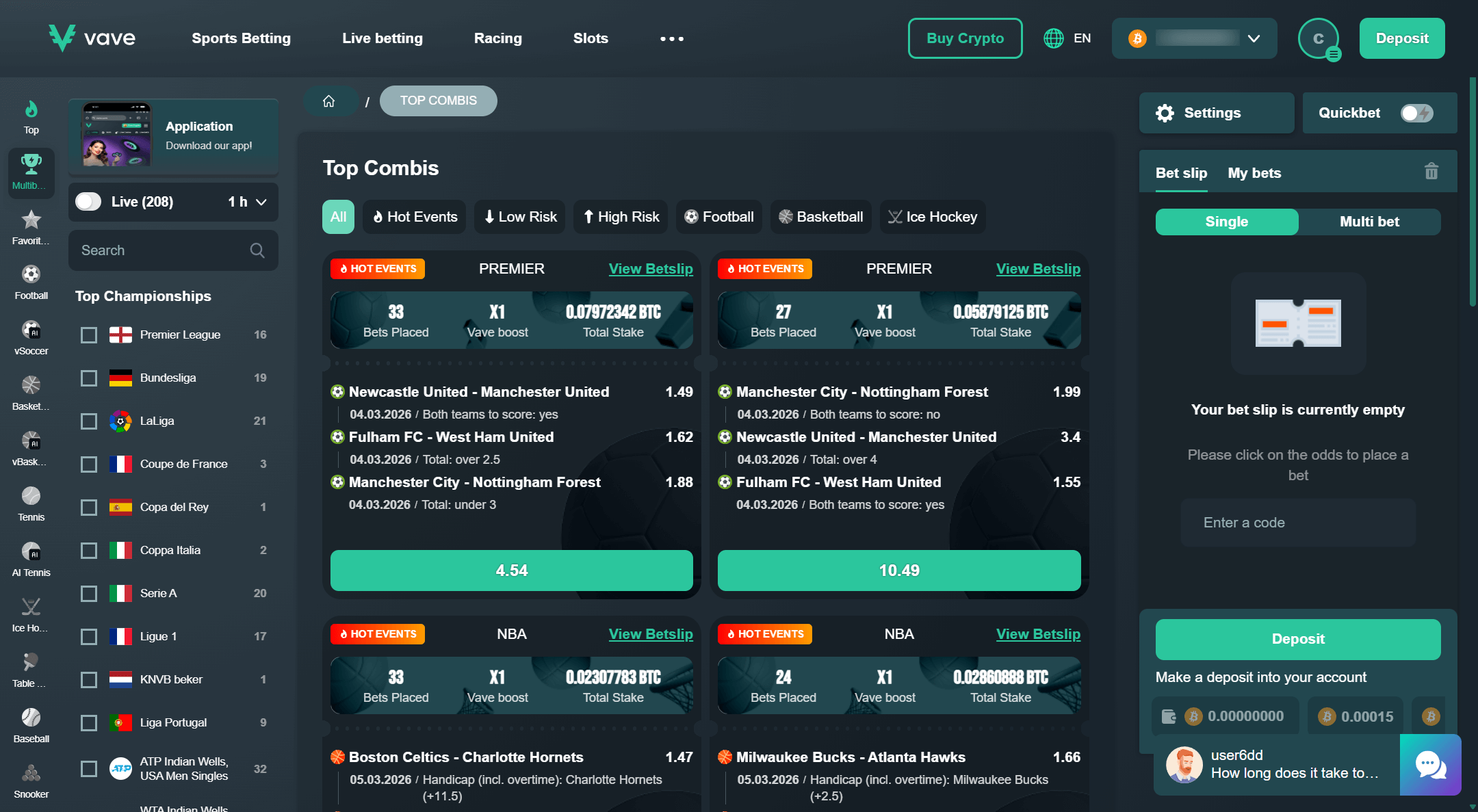 Live betting on Vave feels like leaning over the rail at the track, odds flickering, markets opening and closing, and your heartbeat climbing with each refresh. In-play coverage spans major sports and events, with an interface that updates quickly enough to keep pace with the action.